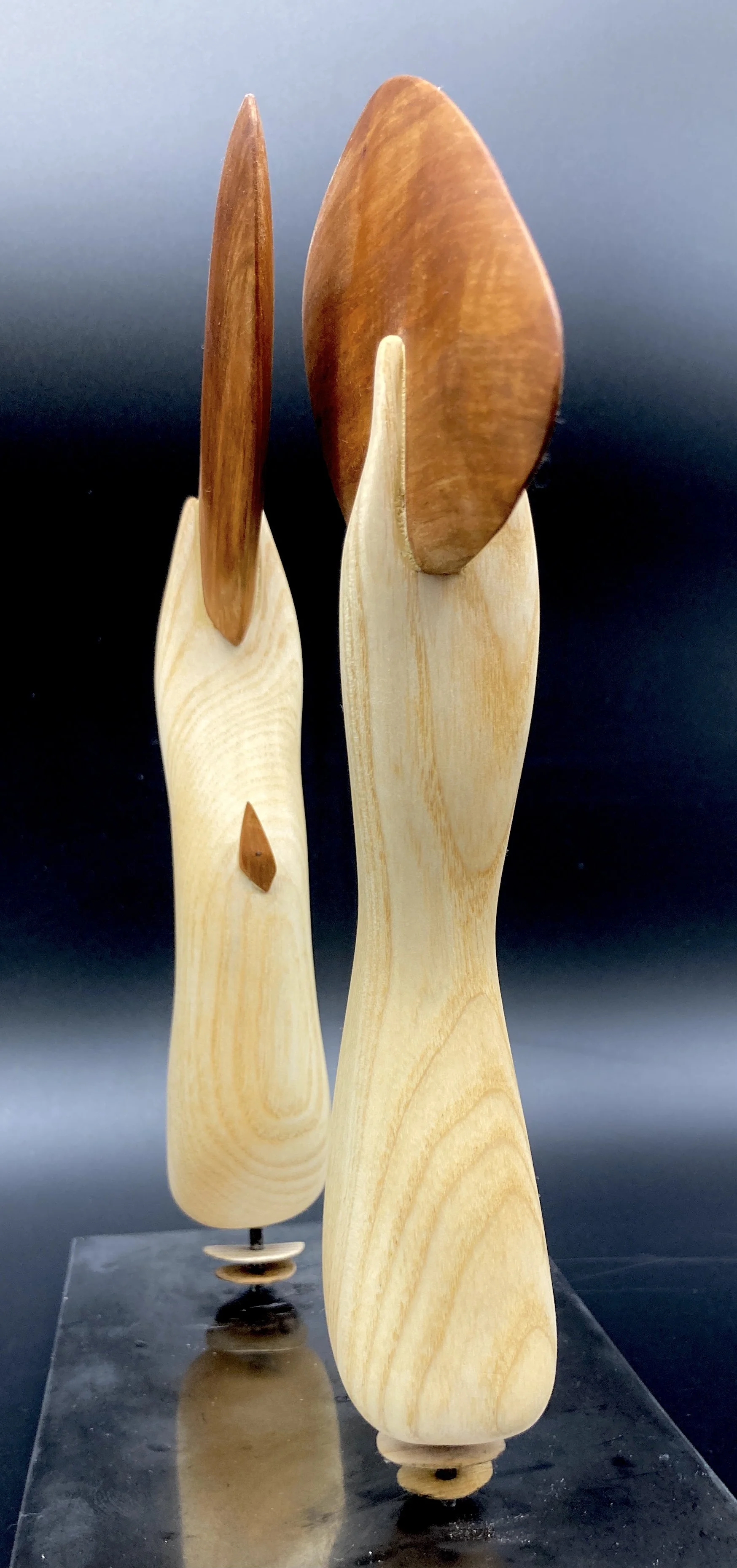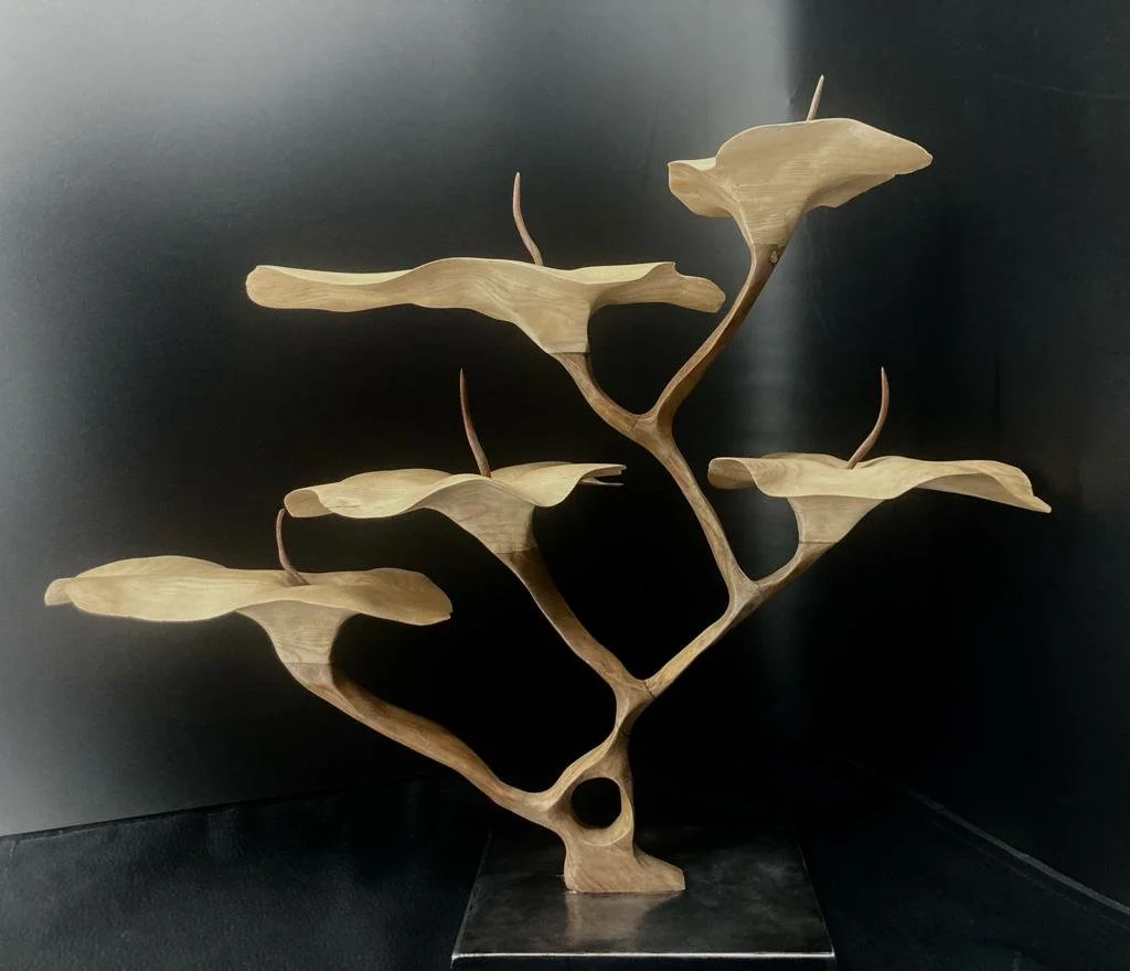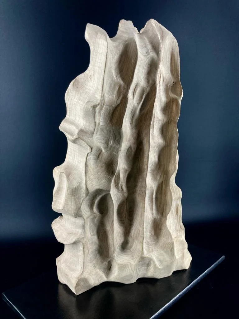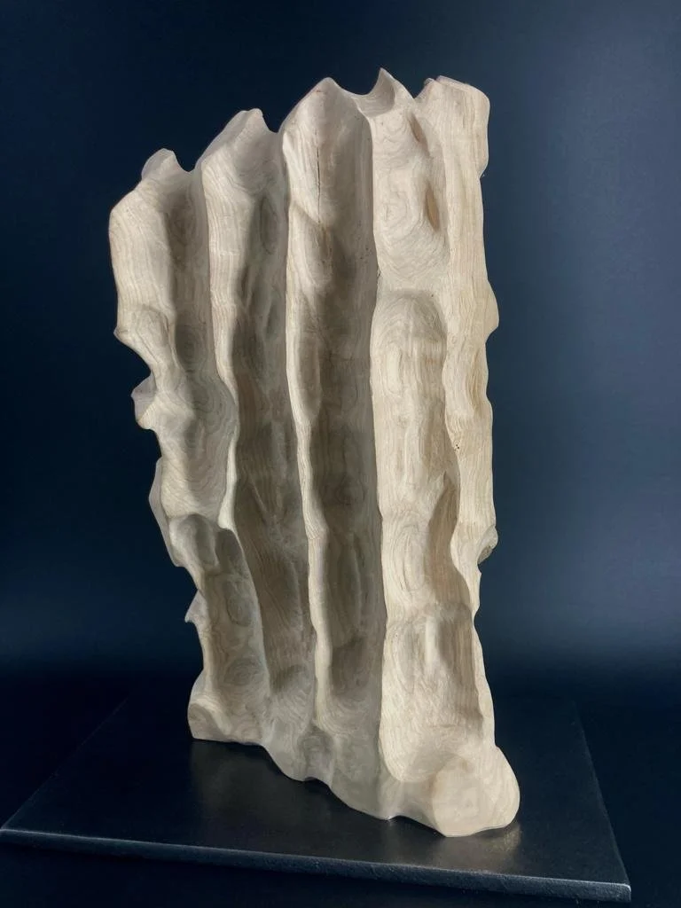 Je dessine peu. J’aborde le plus souvent mes pièces de bois avec une idée en tête mais c’est la matière, l’inspiration du moment qui me guident. Je sculpte comme on peint une toile abstraite, j’avance à tâtons, je tire profit des imperfections…